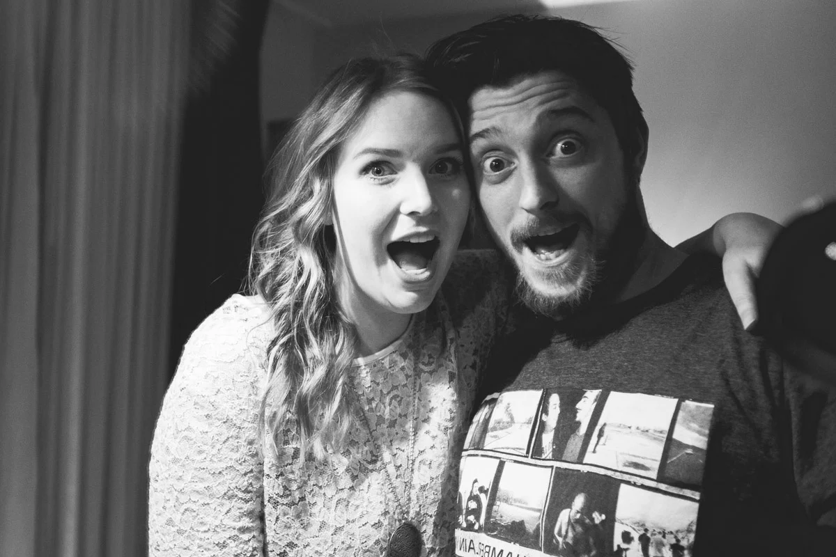Becky has no idea of the plan so far. This is us just leaving Cardiff before the Explosions In The Sky Show.
